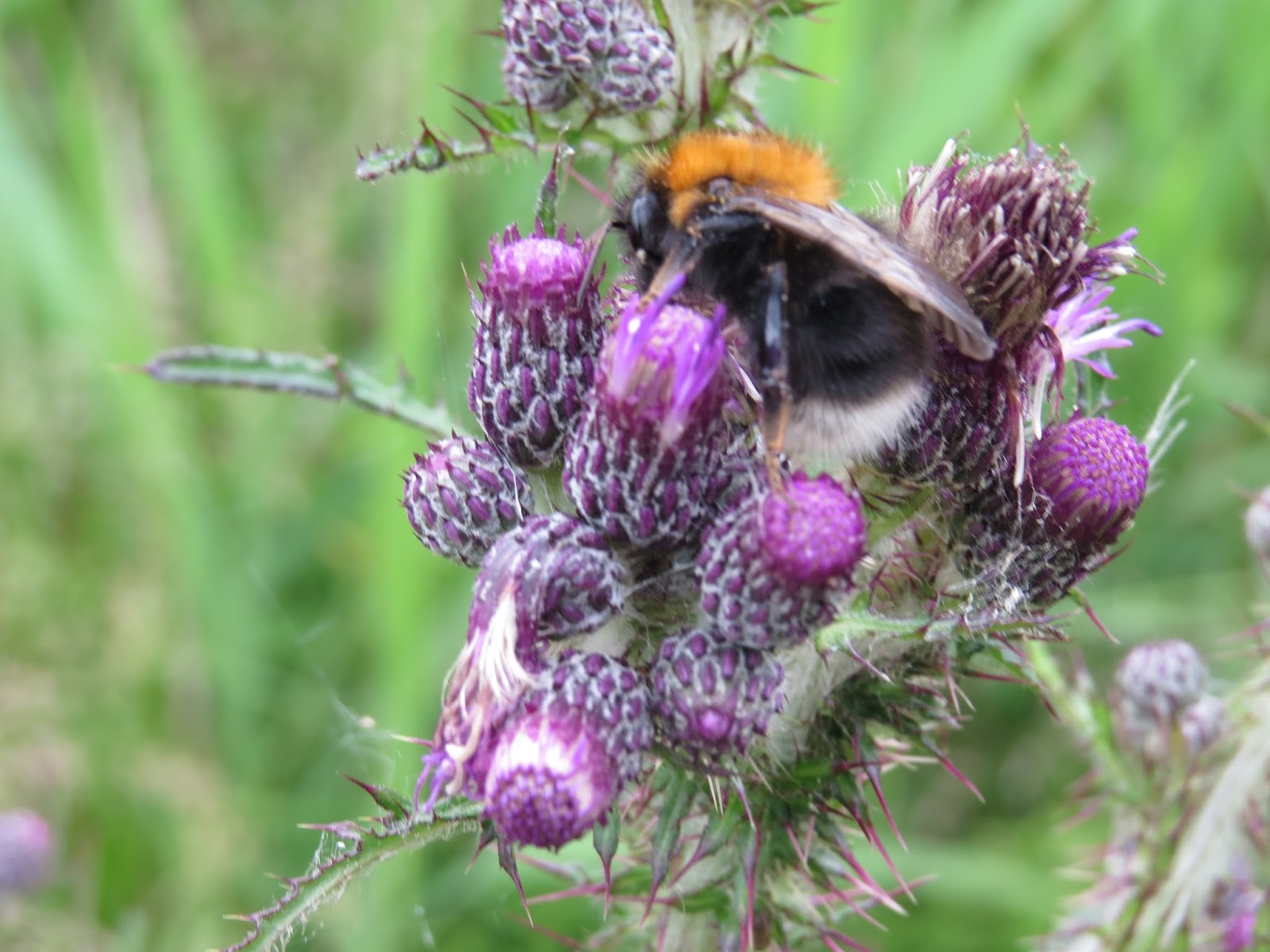 We eventually came out of the bog and were back onto much sturdier ground. Peacock caterpillars covered large patches of stinging nettle. But not all the nettles here can sting you, as Richard demonstrates with another species called the fen nettle. Marsh harriers flew over us as we looked at more special plants. We came across a Norolk hawker, four-spotted chasers and azure damselflies as well as a hobby as we made our way towards where the fen orchids were growing.