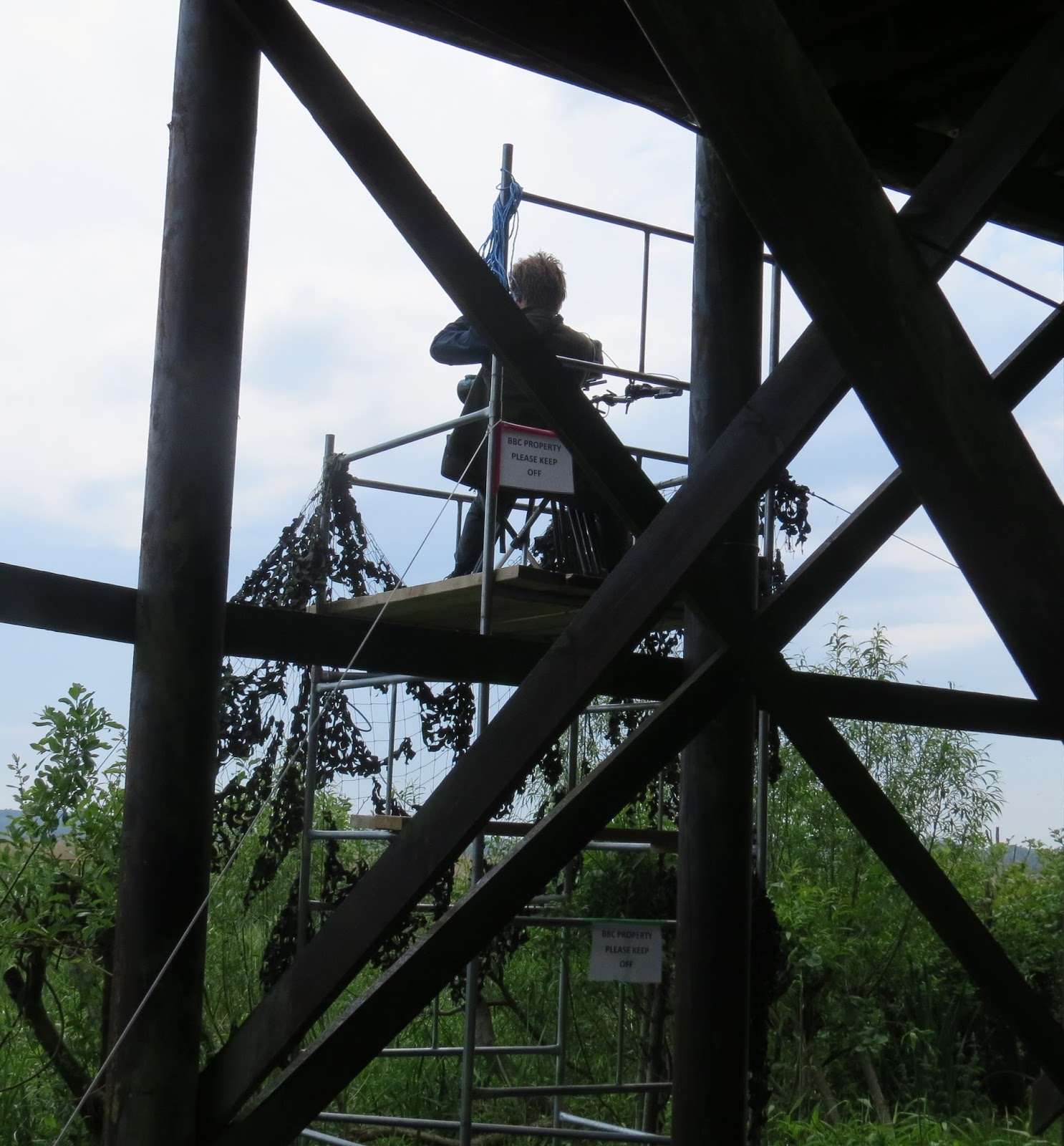 Anyway, back in the hide, the storm grew stronger and the rumbles got louder. Forks of lightning flashed in the sky. I spot 6 spoonbills flying over the reserve, appearing as white as the flashes going on around them. A pair of great crested grebes were doing the weed dance (surprisingly late I know), but were too far away to photograph. Eventually, the storm faded out to sea and the sunny weather returned. I could now go have a look at the area where the ultimate stars of Springwatch are being filmed.