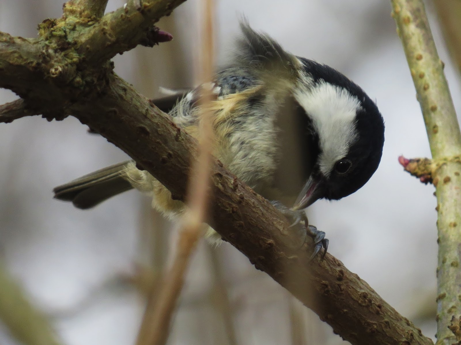 We returned to the visitor centre for lunch, while watching the feeder outside. These feeders were attracting blue, great, long-tailed and marsh tits, blackbirds, robins, chaffinches and even a moorhen and a reed bunting. After lunch, we made our way the lakes on the other half of the reserve. Along the way, we came across a fallen tree which had seed scattered all over it to attract nuthatches, coal tits and marsh tits for photographers. They were unbothered by our presence and you could stand a couple of feet from this tree without scaring them off. They were used to people, but that didn't mean they were easy to photograph as they were constantly moving and were gone before I could take a shot.