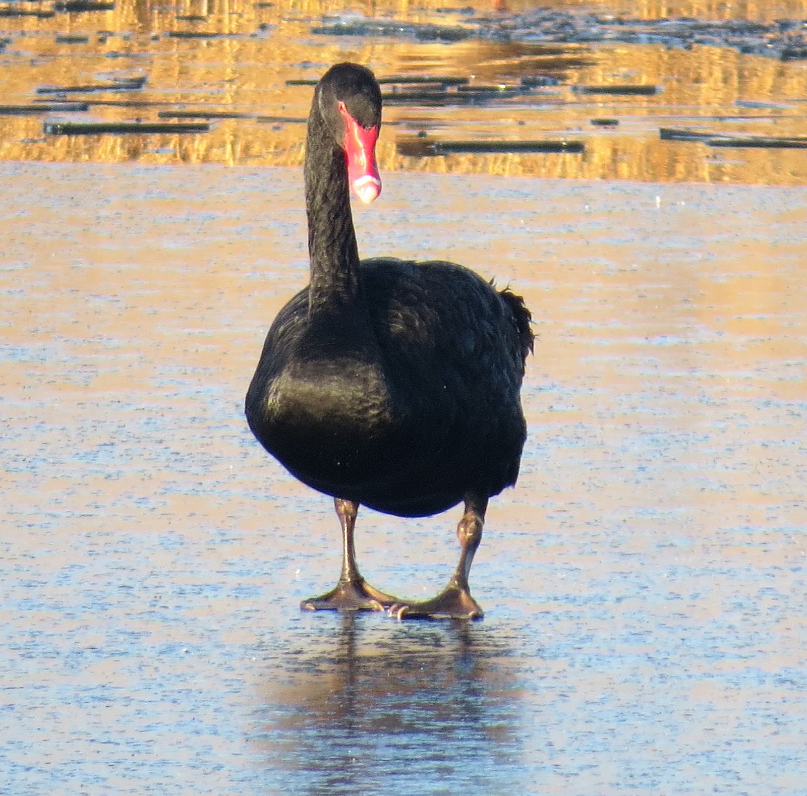 The sight outside Reception Hide was a complete sheet of ice with one ice free area amongst the reedy islands, where ducks, coots, Cobber the resident black swan and a mute swan took refuge. The mute swan, being heavy, acted unintentionally as an icebreaker as it tried to clamber onto the ice only to fall through it every time. Whenever the swan moved about, the ice would make a strange noise. Each movement created a wave of vibration resonating across the whole of the broad which produces this bizarre sound that sounds like a load of milk bottles clattering against one another on a milk float or the vibration of metal cables or even the sound of birds tweeting. With the other wildfowl, smaller squeaks could be heard from the ice.