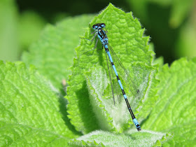 Not the greatest day for swallowtails then, but for other butterflies and insects, it has been a brilliant morning. Especially damselflies. I think I have seen nearly every species that I know that are out now. When it comes to damselflies, I can't say that I am a true expert on telling them apart. The obvious one is the large red damselfly, which is self explanatory, but the others are blue and can look very similar to one another. To tell them apart, you need to study the black markings very closely. Not an easy task even for an amateur expert like me. The best one that I do know with enough confidence is the red-eyed damselfly, which has, well, red eyes and loves sitting on lily pads.